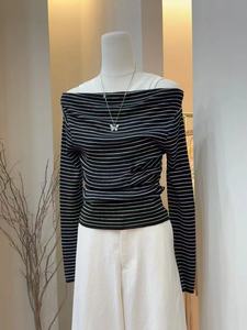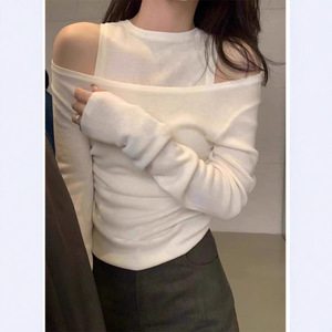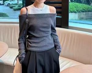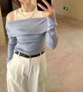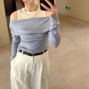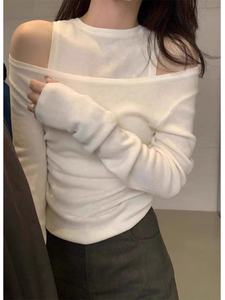 2025年气质露肩针织衫女秋冬假两件打底毛衣高级感修身内搭上衣潮