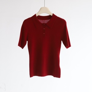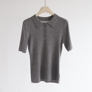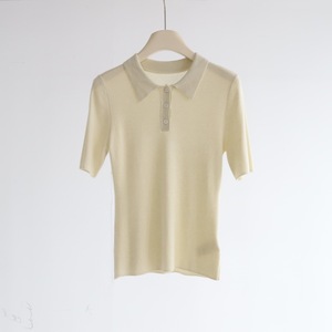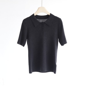 醋酸羊毛POLO领通勤针织短袖女秋季新款简约四平织法女装翻领上衣