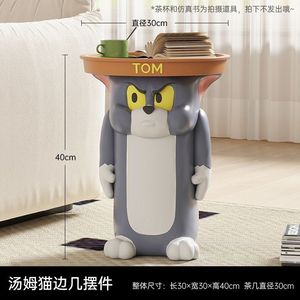 新款汤姆猫杰瑞鼠移动边几创意卧室卡通轻奢高级感床头柜落地摆件