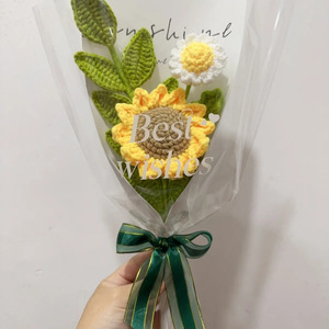 跨境手工毛线花仿真花艺装饰向日葵花朵妇女情人教师节伴手礼