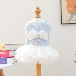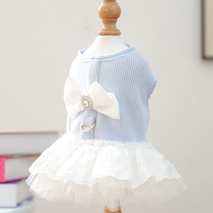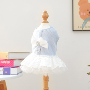 现货跨境爆款宠物小狗猫咪衣服工厂直销春秋新款蓝白蝴蝶结公主裙