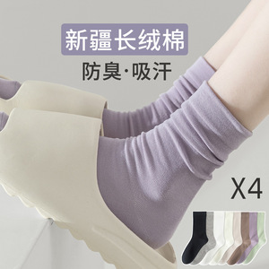 袜子女春秋款中筒袜纯棉日系纯色简约棉袜秋冬季月子袜堆堆长袜