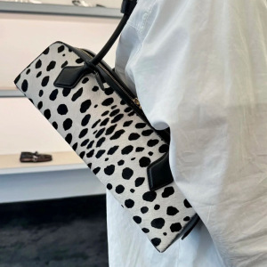 高级腋下包包新款复古时尚豹纹休闲手提单肩通勤黑色斑点腊肠包