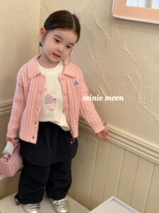 小月亮秋季新款女童童装韩版中小童毛衣外套卡通T恤休闲裤3125