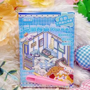 新款三丽鸥迷你可爱卡通微缩造景本模拟场景口袋本 DIY场景贴纸本