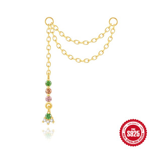 S925纯银镶钻几何流苏耳坠耳环配件earrings charm珠子吊坠耳饰品