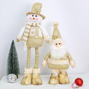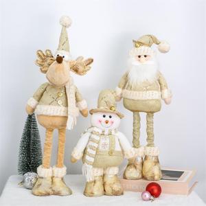 圣诞节老人雪人麋鹿摆件伸缩腿款金色娃娃北欧风圣诞家居装饰品