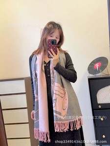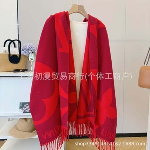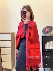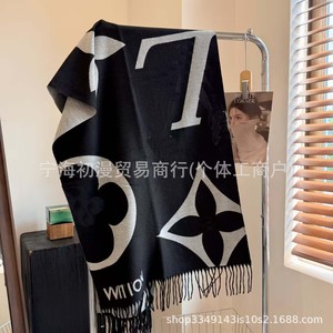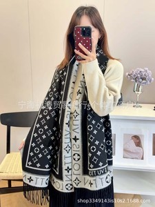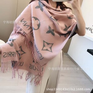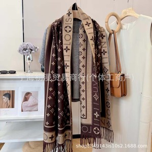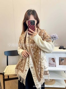 正确版本长双面仿羊绒围巾女高级感秋冬老花字母披肩加大保暖加厚