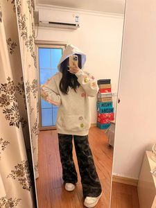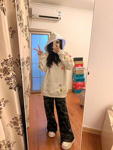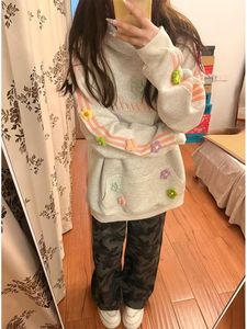 美式复古立体花朵刺绣连帽卫衣女春秋潮牌宽松休闲小个子百搭上衣
