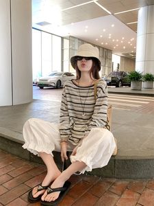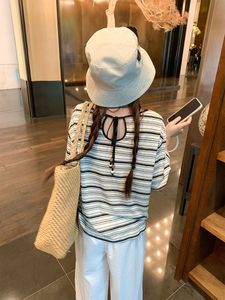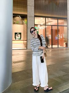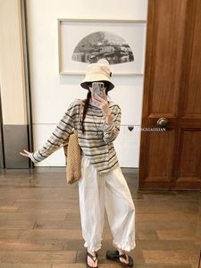 曾小咸 韩系穿搭黑色条纹薄款长袖防晒罩衫女夏宽松慵懒风t恤上衣