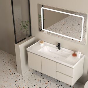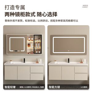 奶油现代智能浴室柜简约陶瓷一体洗脸盆组合卫生间洗漱实木洗手盆