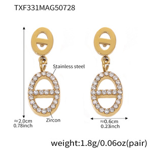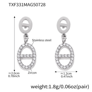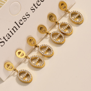 鑫艺鑫新款不锈钢5A锆石双日子满钻流苏项链耳环套装ins开口戒指