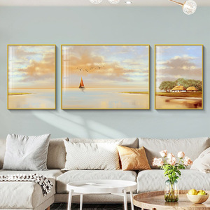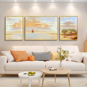 北欧奶油风客厅装饰画高级感风景沙发背景墙挂画现代简约三联壁画