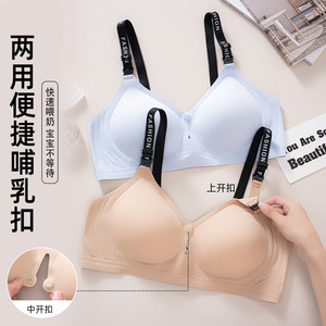 加大码罩杯英文带孕妇内衣怀孕期上开扣喂奶哺乳文胸果冻无痕聚拢