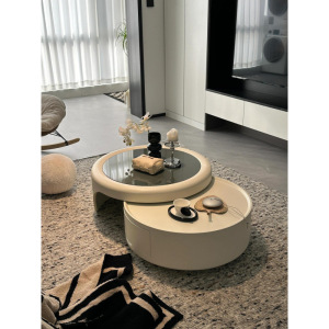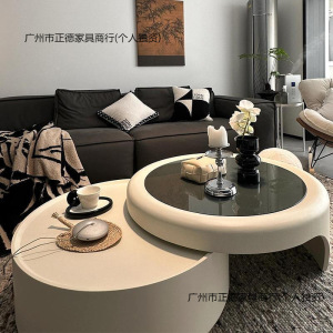 好似玉现代简约新款网红法式茶几客厅家用小户型感奶油风圆形轻奢