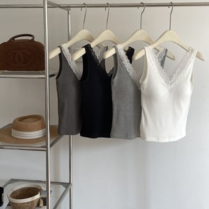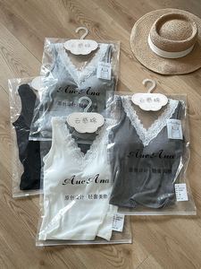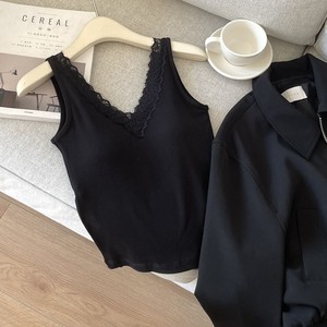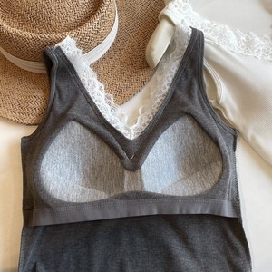 三只兔8801早春V领蕾丝花边吊带云感养肤螺纹棉一体带胸垫背心女