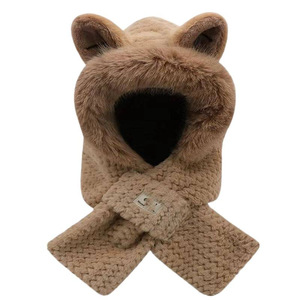 秋冬季帽子女可爱冬天毛绒绒围巾加厚一体围脖毛绒冬季保暖护耳帽