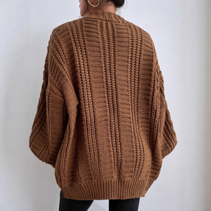 欧美亚马逊跨境 纯色粗针毛衣女外套 新款中长款休闲慵懒风针织衫