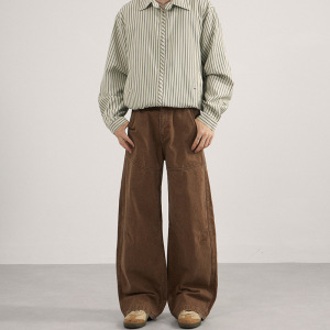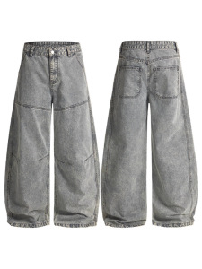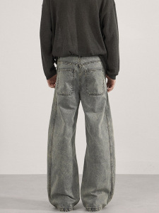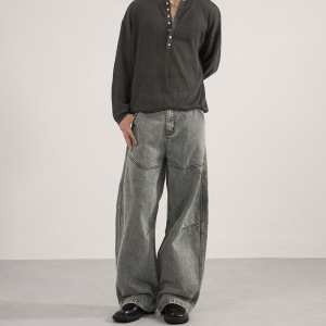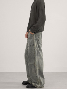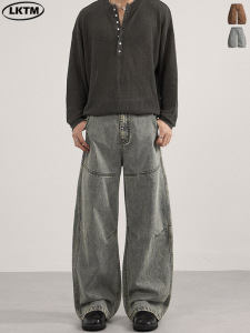 LKTM男装 水洗做旧解构竹节弯刀休闲裤男女百搭廓形显瘦拖地长裤
