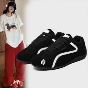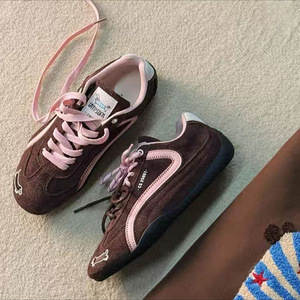 红色德训鞋女2025新款春秋百搭运动休闲鞋复古系带单鞋软底阿甘鞋