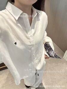 2025秋季新款美式老钱风小马标亚麻衬衫女宽松百搭休闲防晒衬衣