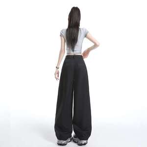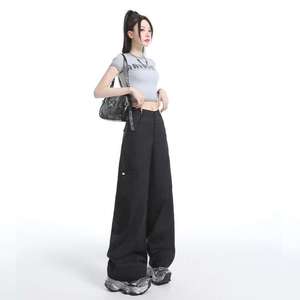 批发美式黑色工装裤女夏季宽松显瘦运动速干休闲阔腿裤代发