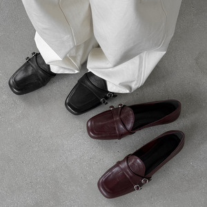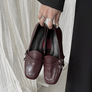 英伦风高级感头层羊皮乐福鞋2025秋季通勤平底方头真皮深口单鞋女