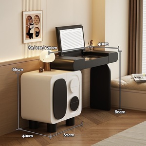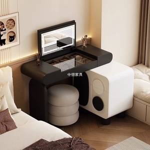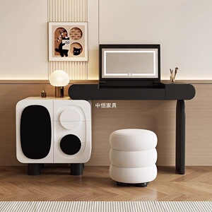 黑白熊猫梳妆台小户型实木化妆桌卧室奶油复古风斗柜一体新款翻盖