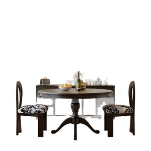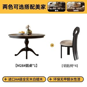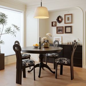 美式圆形白蜡木问实木餐桌椅黑色法式中复古风圆桌北欧小户型饭桌