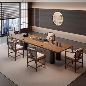 新中式实木大板办公室茶桌椅组合商务风茶室原木茶台2025新款