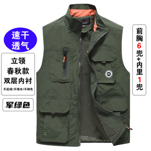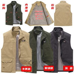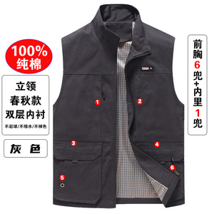 春秋纯棉立领男士马甲大口袋休闲坎肩爸爸户外工装摄影背心外套新