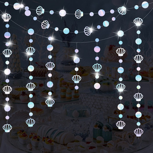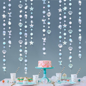 跨境生日布置装饰品道具美人鱼主题贝壳拉花丝带派对装饰布置用品