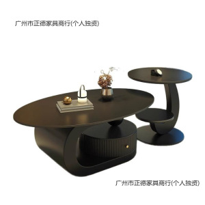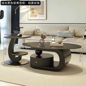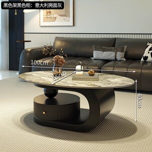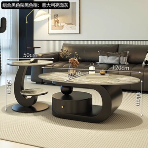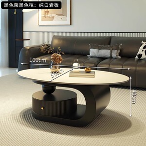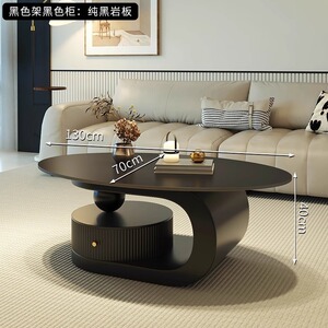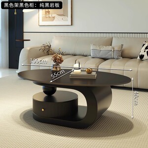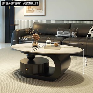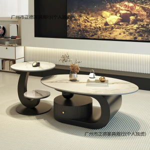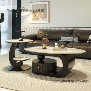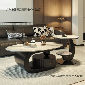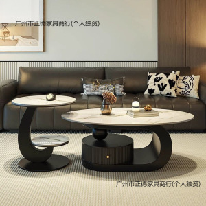 新款意式椭圆形岩板茶几轻奢高级小户型现代简约客厅家用网红组
