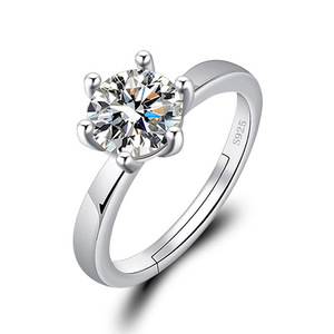 直播跨境经典六爪戒指女开口钻戒小众莫桑石戒指欧美奢华外贸首饰