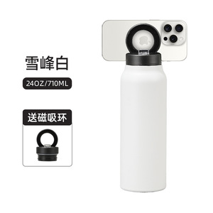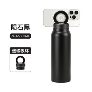 跨境磁吸盖运动水壶放手机支架304不锈钢太空壶大容量真空保温杯