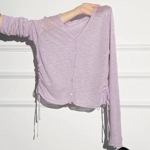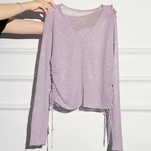 香芋紫防晒罩衫长袖开衫T恤女夏季薄款抽绳收腰设计绝美漂亮上衣