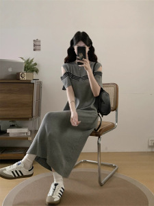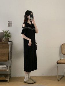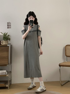 2025年大码女装胖MM夏季新款设计感条纹露肩气质减龄显瘦遮肚连衣