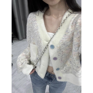 V领短款毛衣外套女春秋2025新款设计感甜美减龄气质长袖针织开衫
