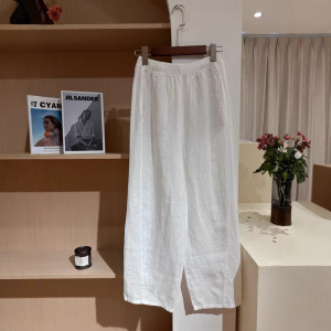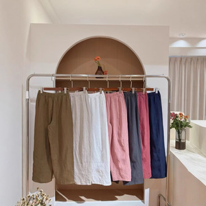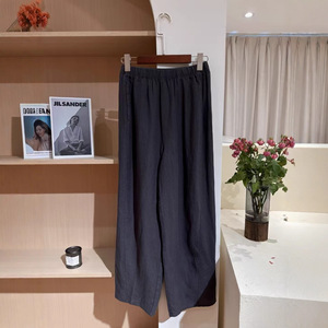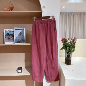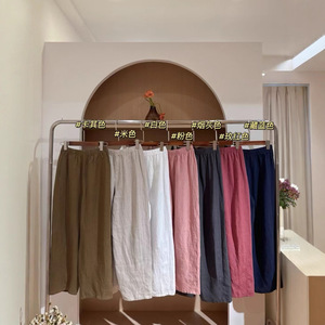 031604 新品女士汉麻阔腿裤 纯色松紧腰百搭休闲九分裤2025