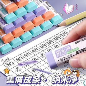 得力纳米净橡皮擦无屑超干净集屑成条无碎屑马卡龙不留痕擦字成条