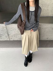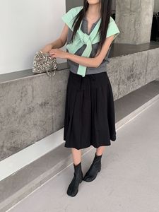 6UP早秋新款韩系天丝百褶中裙抽绳广州13行新款高级感慵懒50156