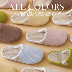 亚麻拖鞋女春秋冬季情侣一对厚底防滑透气吸汗家居室内月子拖鞋男