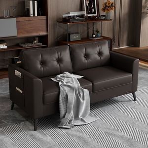 休息接待黑色皮布双人沙发公寓沙发小户型出租房客厅理发店棋牌室