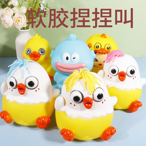 小鸡小鸭子玩具搪胶pvc软胶捏捏叫亲子互动动物模型亲子互动玩具