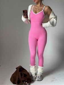 希音爆款撞色吊带运动瑜伽连体裤无袖速干螺纹紧身健身连体瑜伽服