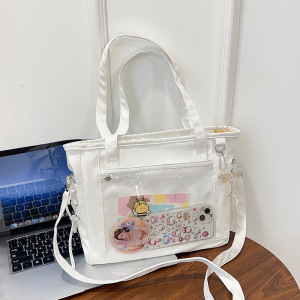 2025可爱大容量痛包流行拼接透明时尚单肩手提托特女包学生背包潮