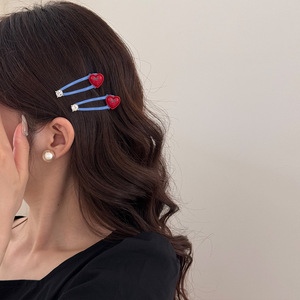 韩国复古蝴蝶结刘海发夹夏季甜酷侧边新款红色爱心珍珠公主简约女