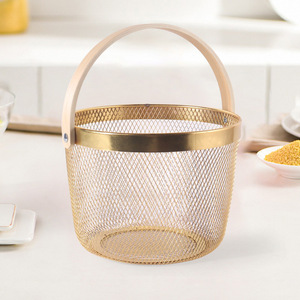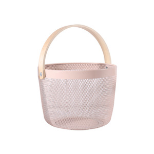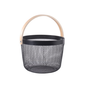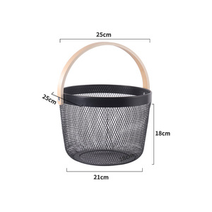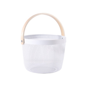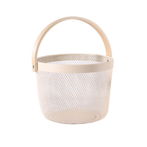 铁艺木手柄镂空收纳篮家用厨房水果蔬菜沥水篮露营收纳购物提手篮