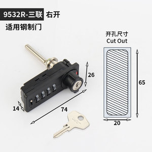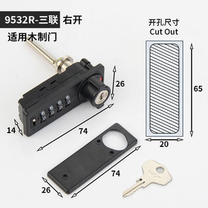 9532密码柜子锁办公桌三联锁抽屉储物铁皮文件柜更衣柜拔号密码锁
