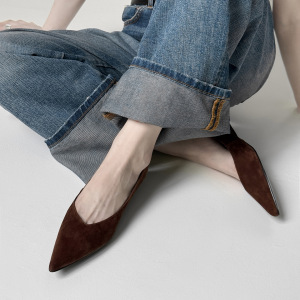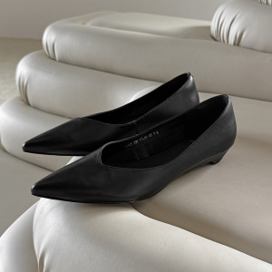 敲有气质小尖头极简风头层羊皮2025秋季粗低跟通勤真皮浅口单鞋女